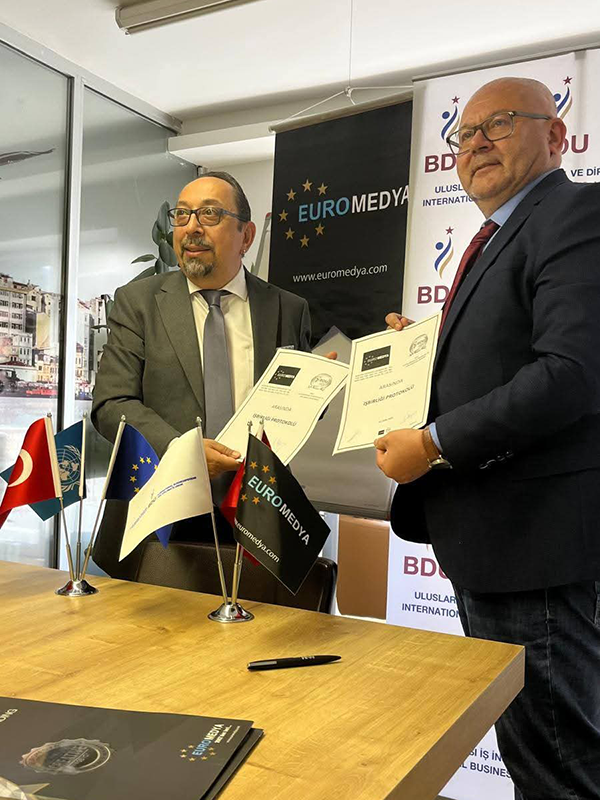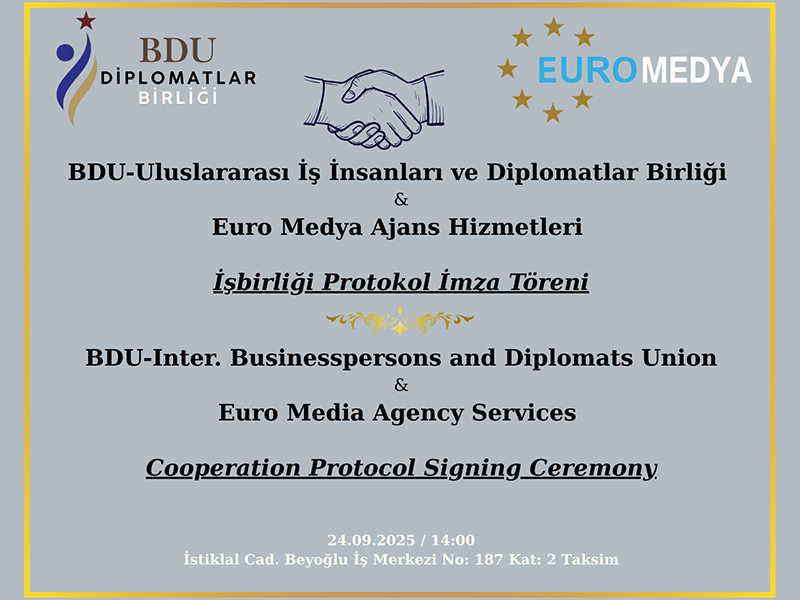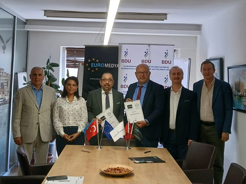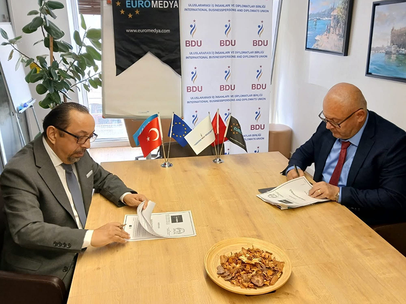 The "Cooperation Protocol" signed today between Euromedia and the Union of Diplomats (BDU) will facilitate collaboration on various issues, including establishing a network for purchasing, selling, and brokerage services in the goods and services sectors, commercial diplomacy, and joint events.